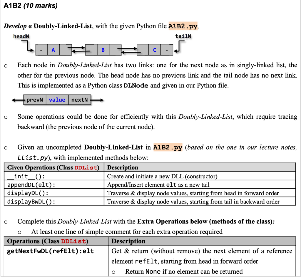 Solved A1b2 10 Marks Develop A Doubly Linked List With Chegg Com